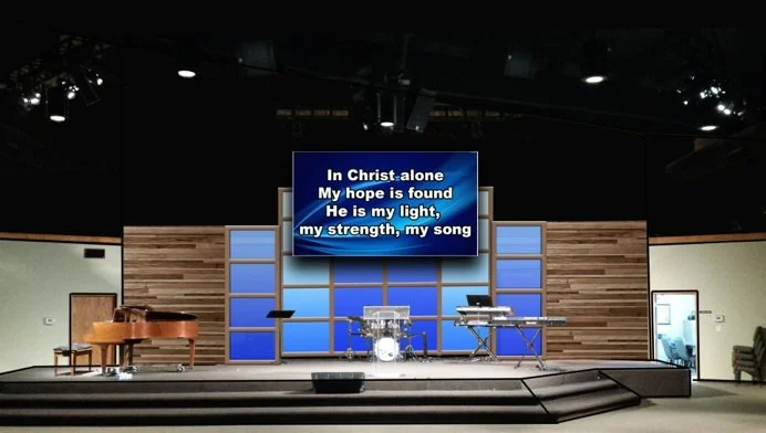 Below is a stage Nick remodeled for Valley Church in 2009, and made subsequent upgrades and redesigns through 2012.